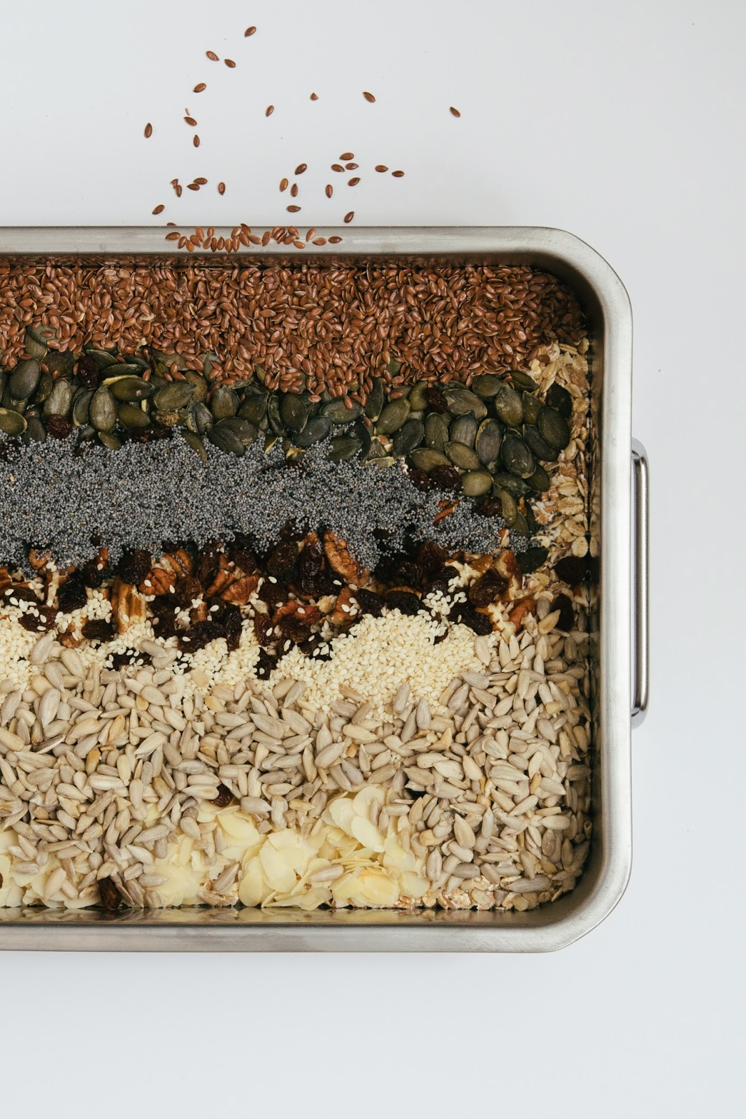 i wanted to kick off this series with my current obsession for granola because it is honestly all i can seem to talk about lately. ever since i tried the lovely louise de brabandere’s thursday dinners recipe, i’ve been hooked. i love her combination of spices and sea salt that make the mix of oats, seeds and nuts so interesting and full of flavor. for my version i added some more ingredients i had lying around the house, like flax, pumpkin and poppy seeds.