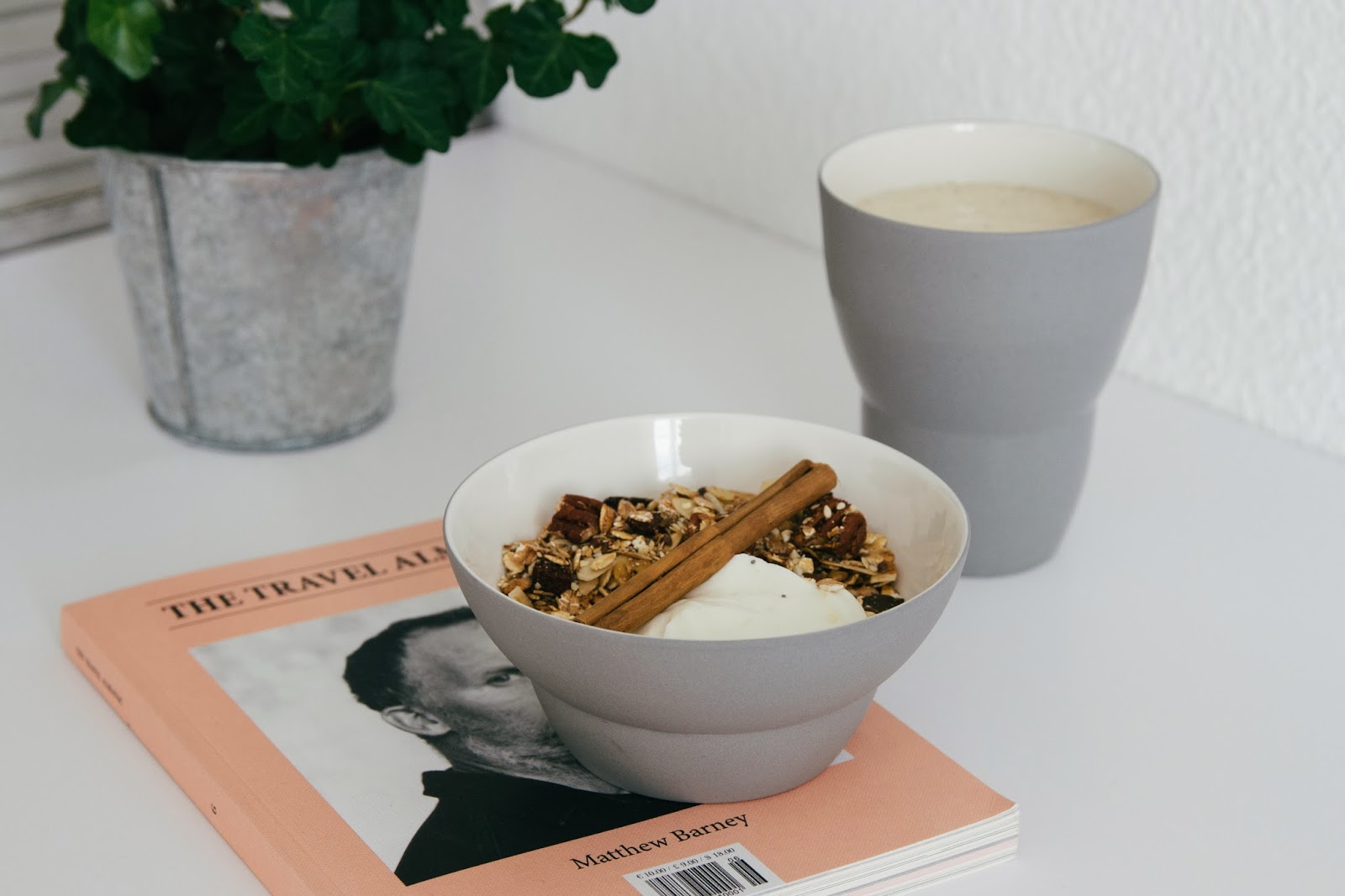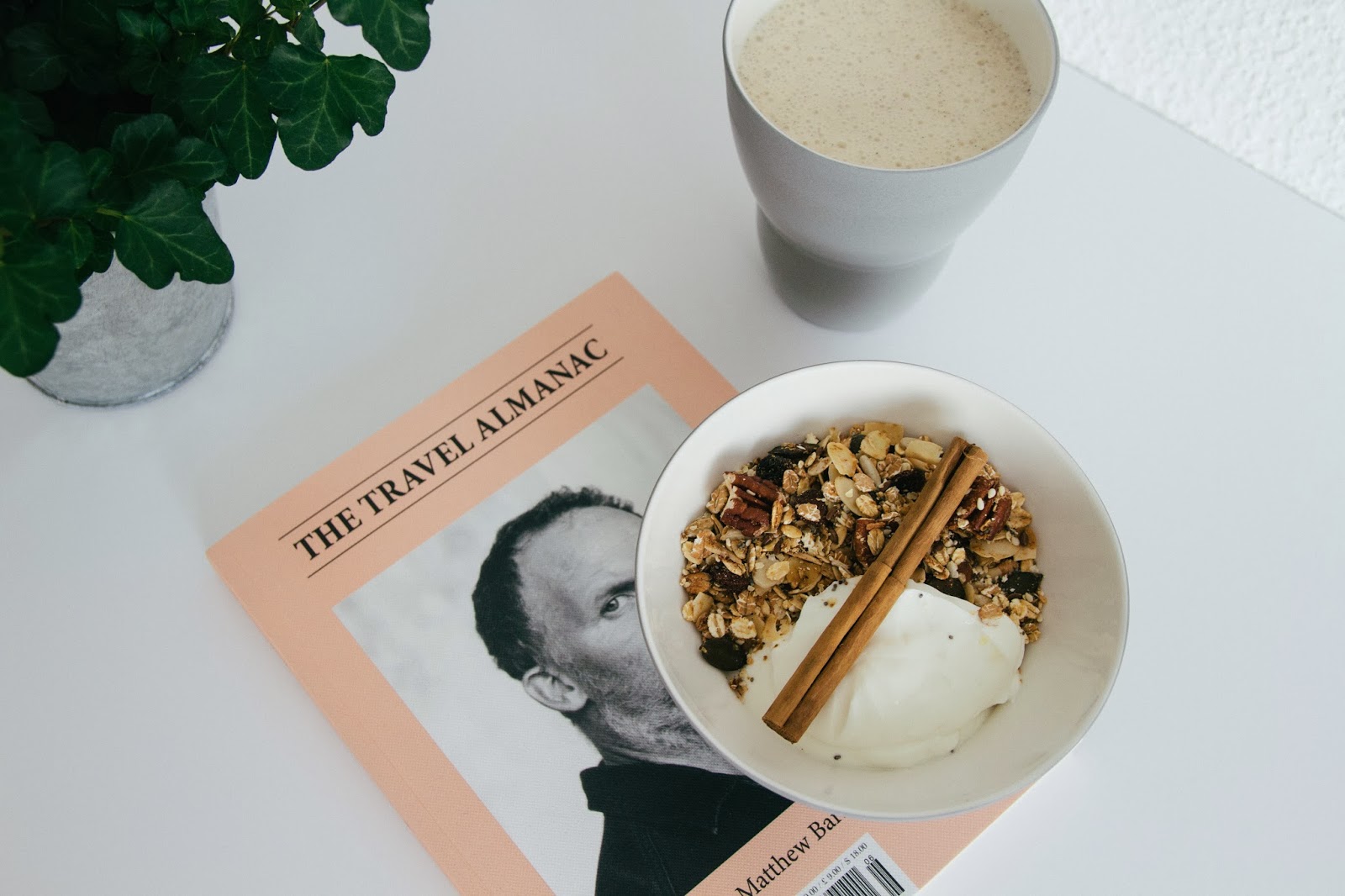 it is so easy to make, and baking the granola makes our apartment smell like christmas. i always make a big batch so that it’ll last us a while, and combined with greek yogurt it is my breakfast of choice for mornings that are all about inspiration reading and preparing creative projects. on this particular morning, i had it with an almond milk-banana smoothie with fresh vanilla (blend it with some ice cubes to make it taste super refreshing).