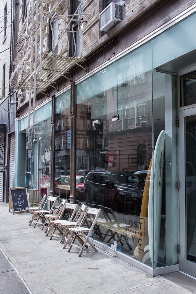 why? because they have awesome clothes, super nice accessory lines that you can hardly find anywhere else, and almost without exception, they serve really good espresso. my favorite place in manhattan has to be the little patio behind the SATURDAY’S SURF shop, with its cozy lights and everything. and if i lived on the lower east side, i’m sure LOST WEEKEND would be my main hangout – their communal table is the best place to meet cool new people. and in williamsburg, it’s PILGRIM SURF + SUPPLY that stole my heart with its colorful interior.
