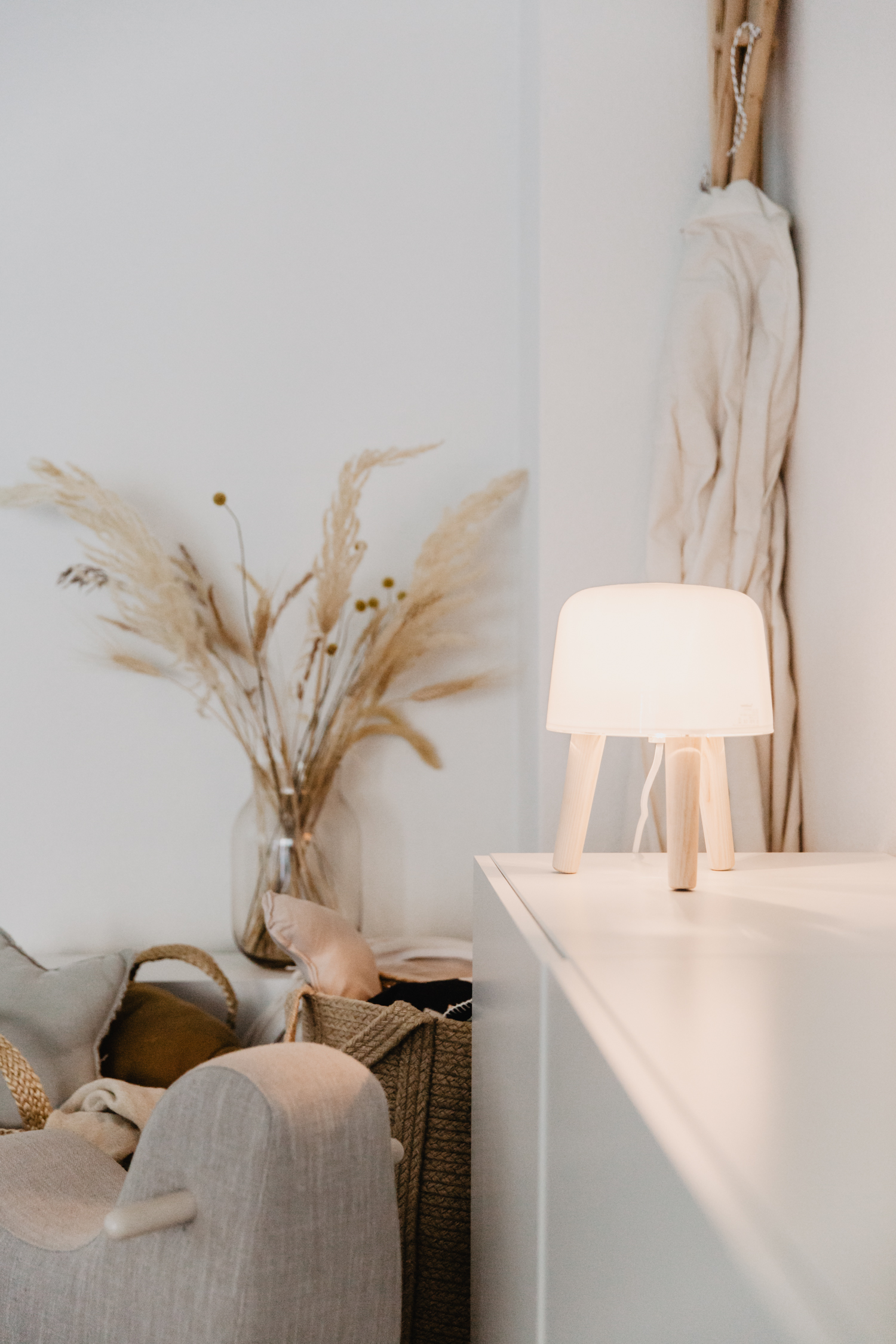 during the lockdown i haven’t felt particularly inspired to do any kind of redecorating, but near the end of it i added a few new details to our living room that have already made a huge difference. the table lamp we used to have next to the tv was old – i bought it when we first moved to geneva – and it didn’t match anything in our interior anymore. it was black and minimal and missed all of the warmth of this AND TRADITION MILK TABLE LAMP that i found in mister design’s selection of DESIGN TABLE LAMPS.