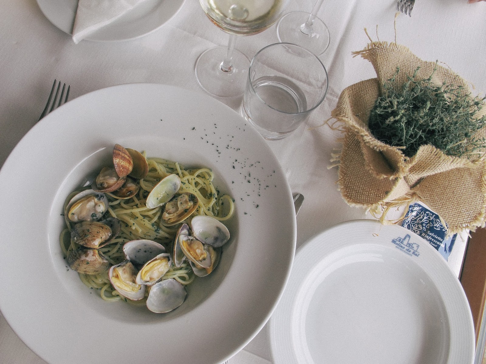 the service is great, and the restaurant is beautiful, but you never get the feeling like your casual holiday outfit is somehow out of place. i really like the little details here, too – from the sea-inspired gin and tonic to the fresh rosemary and thyme on each table. i’d recommend going for the seafood at this place, and try to get a table near a window with a view on the bay. it’s all just perfect. if you are engaged and are considering a destination wedding on formentera, this is where i would go if i were you.