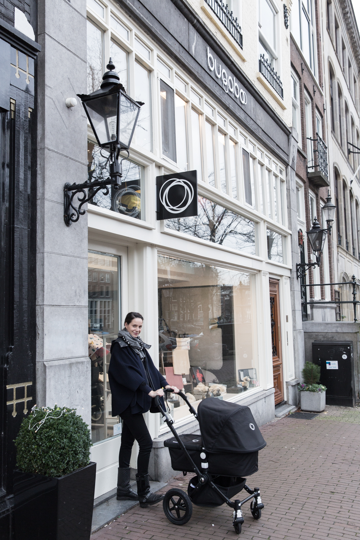 the story begins in amsterdam, where bugaboo’s headquarters are based and their very first flagship boutique (in the meantime they’ve opened up a second flagship in capital of cool berlin). it was funny to go back there to pick and choose our own stroller. it seems like just yesterday that my husband and i would stop by here during OUR TRIPS TO AMSTERDAM and sneakily try to get the store attendants to divulge what the next special editions were going to look like. suddenly we had to decide, and in the end we opted for the BUGABOO CAMELEON in an all-black version. for me, it is the most iconic of the company’s designs, and the all-black version makes it such a sleek design object.
